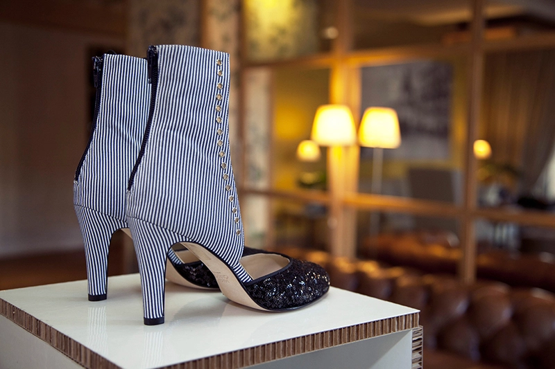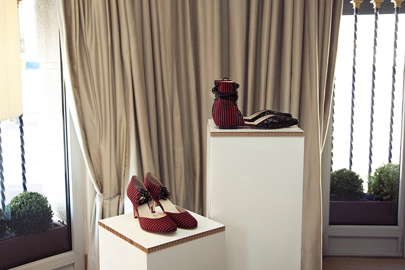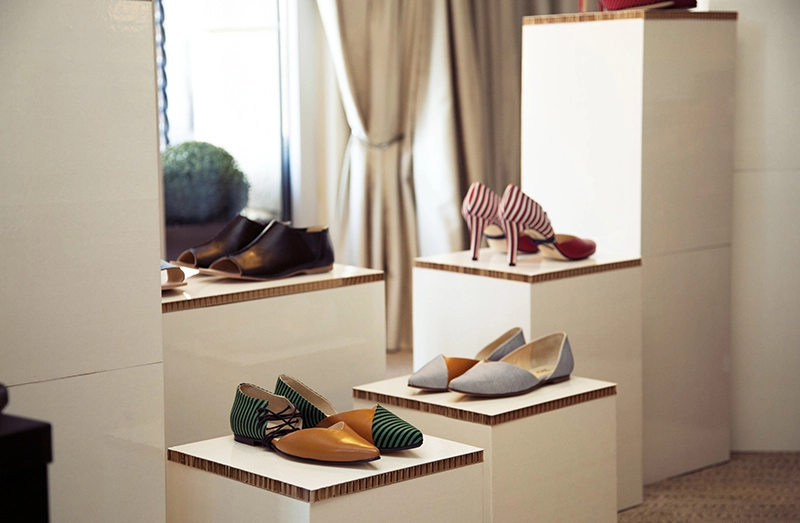 Conjunto de peanas de cartón para producto, mostrando la línea de calzado MAGRO & CARDONA.