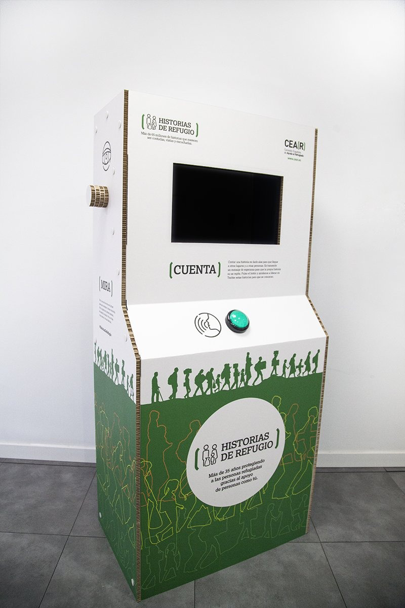Tótem interactivo de cartón para CEAR, Comisión Española de Ayuda al Refugiado.
