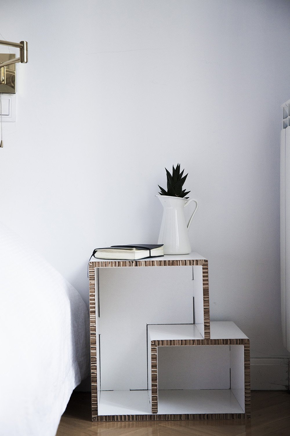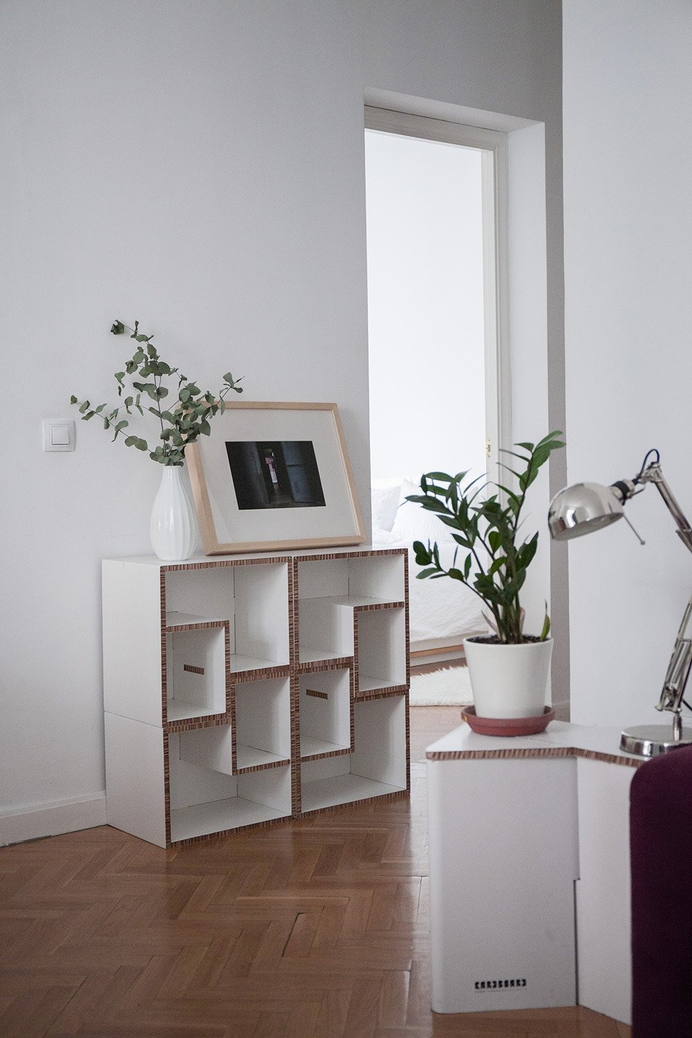 Su diseño estructural garantiza un montaje sencillo, rápido y sin necesidad de ningún tipo de herramientas. El sistema de ensamblaje es sencillo e intuitivo, y permite unir los módulos por la parte trasera, con una pieza diseñada en forma de U que los va uniendo unos con otros generando una estantería unida en bloque.