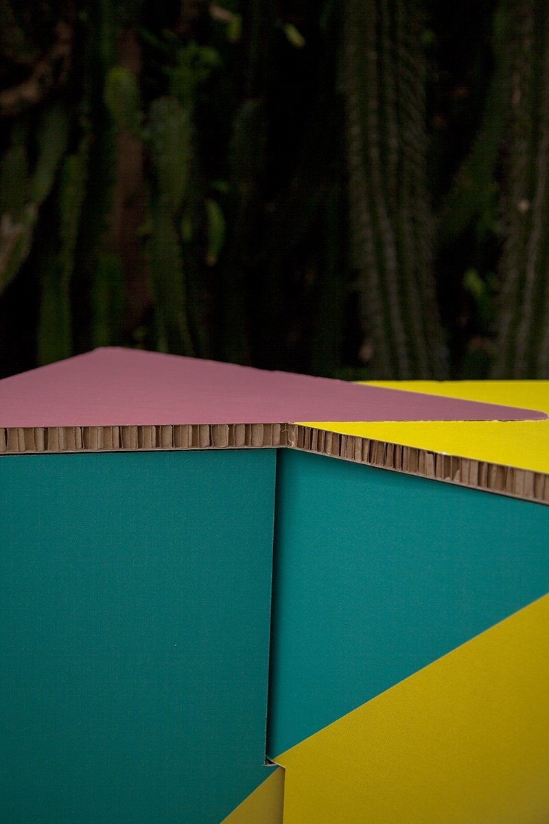 Una de las características más destacadas de este asiento de cartón sostenible es su superficie superior. Las tapas encajan de forma precisa, creando un patrón geométrico que mejora tanto la estética como la estabilidad. Además, el sistema de entrelazado, junto con el grosor del material, permite un montaje rápido e intuitivo, sin herramientas.