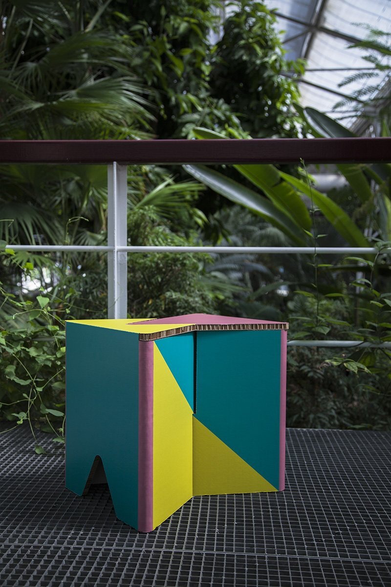 Taburete de cartón plegable y fácil de transportar