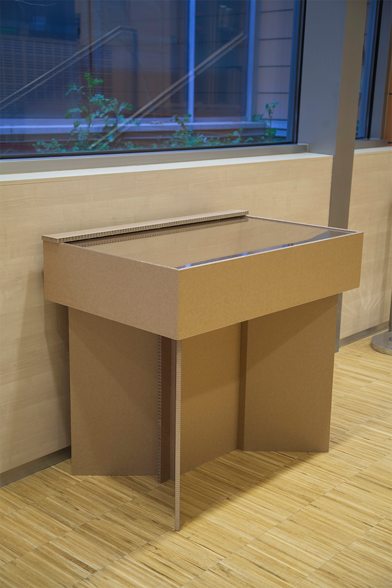Vitrinas de cartón para exposiciones de arte o producto con cierre de seguridad diseñadas a medida y desmontables.