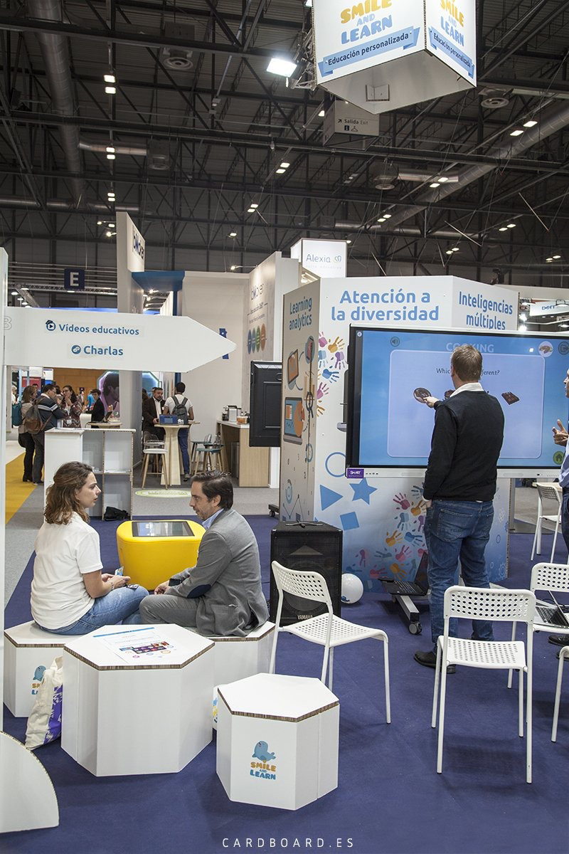 En la pasada edición de SIMO EDUCACIÓN 2019, feria realizada en Ifema del 5 al 7 de noviembre, realizamos este almacén de cartón para ferias para la marca Smile and Learn, una plataforma educativa donde los niños encontrarán juegos, vídeos y cuentos interactivos para divertirse mientras aprenden.