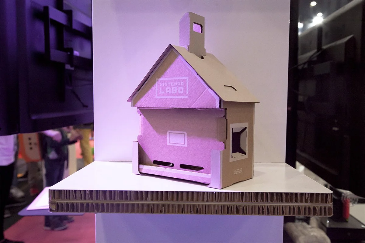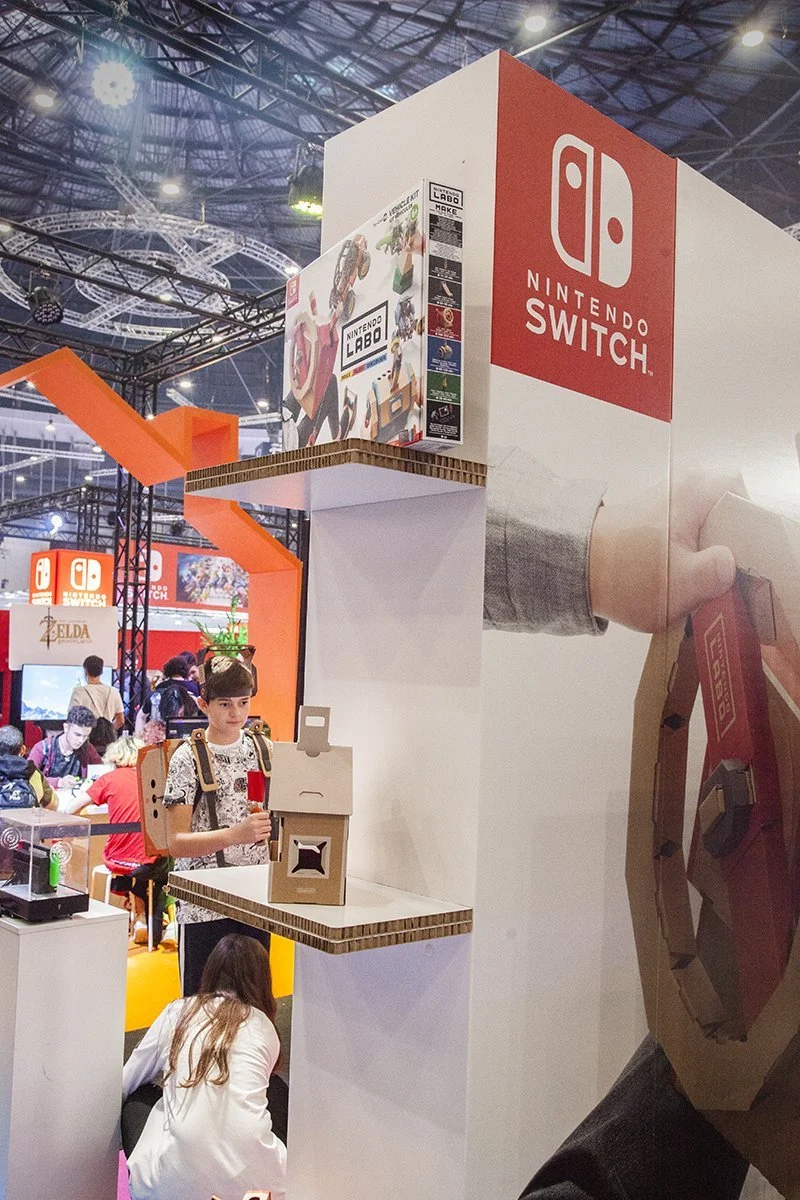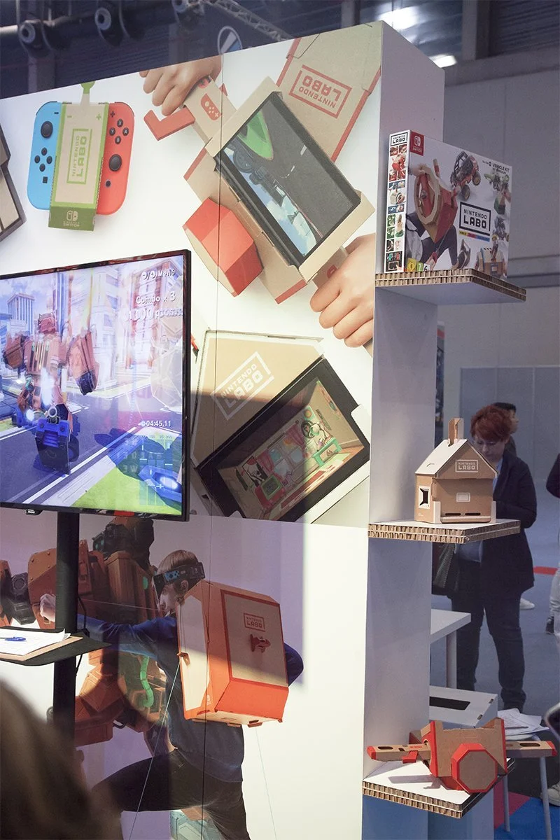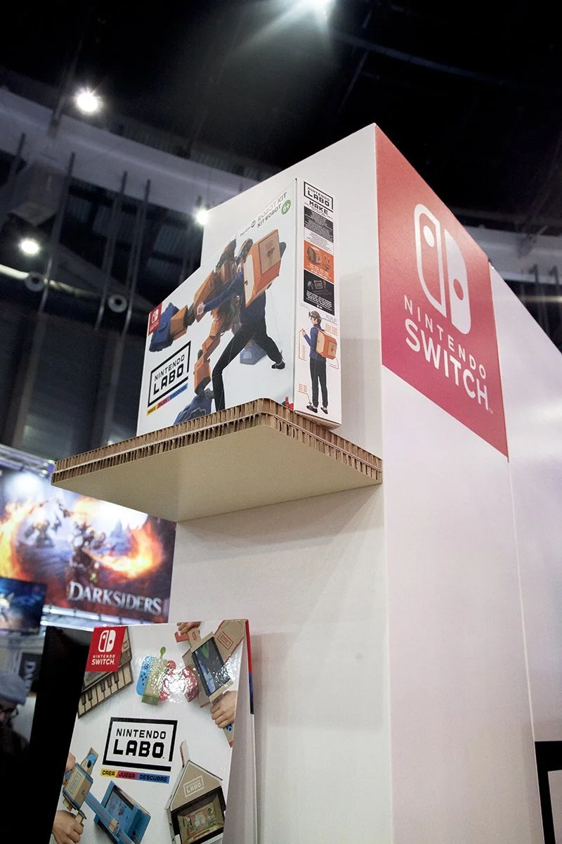 Muro expositor de cartón Nintendo-Labo, para la feria Madrid Games Week 2018 Ifema.