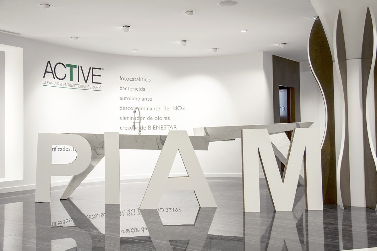 Logotipo corpóreo de cartón para exposición de PIAM